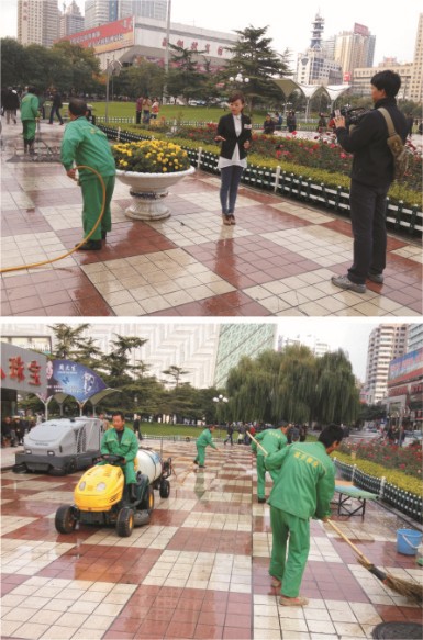 目前全市環(huán)境衛生狀況整體良好,相對第一次,這次“全民洗城”行動(dòng)更規范化,范圍更擴大化、全面化,不僅用灑水車(chē)噴灑車(chē)行道,還用高壓水槍沖洗人行道,用拖布仔細拖洗廣場(chǎng)地面,確保了市容環(huán)境衛生干凈、整潔。