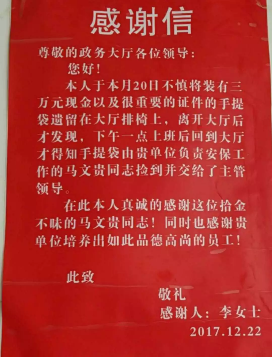 感謝信!給見(jiàn)義勇為,拾金不昧的城關(guān)物業(yè)人