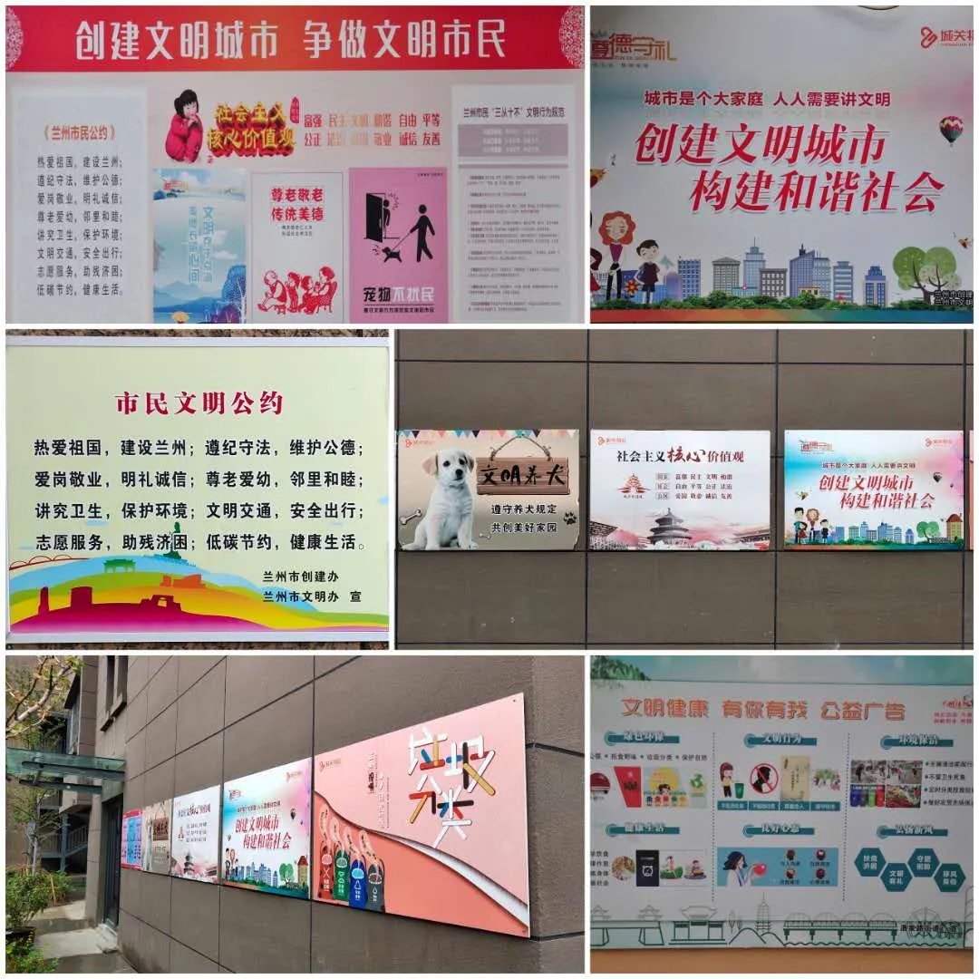 城關(guān)物業(yè)在創(chuàng )文期間加大工作力度,保證環(huán)境整潔,同時(shí)積極開(kāi)展“精神文明”建設工作,在小區內各顯著(zhù)位置張貼創(chuàng )文宣傳海報、宣傳展板,專(zhuān)門(mén)設立“蘭州市文明志愿者”崗,為業(yè)主宣傳創(chuàng )文工作。
