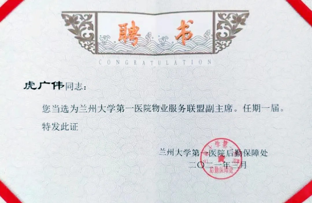 蘭州城關(guān)物業(yè)服務(wù)集團有限公司蘭大一院項目經(jīng)理虎廣偉